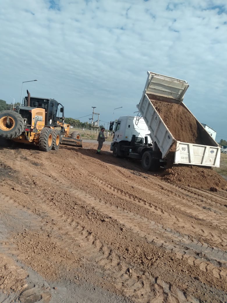 Los trabajos se vienen realizando hace varios días e incluyeron perfilado, nivelación y compactación del suelo, y actualmente se avanza con la colocación de 600 toneladas de ripio, para evitar que durante los días de lluvia se produzcan anegamientos y se garantice la operatividad del playón de maniobras de Aduana.