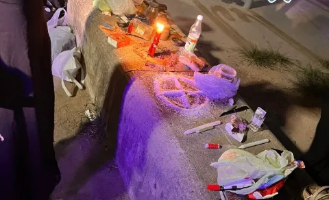 Cerca de las 23:30, personal motorista que patrullaba la zona, observó velas encendidas y otros elementos sobre un banco, ubicado en el sector de juegos, frente al helipuerto.