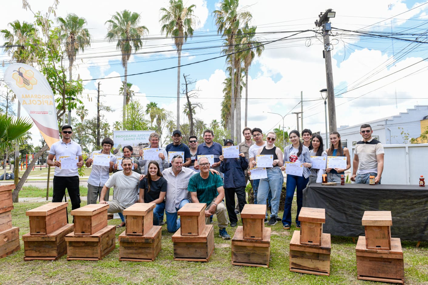 En el marco de las capacitaciones ofrecidas por el Municipio, el INTA y la Aosciación de Productores Apícolas del Departamenteo Comandante Fernandez, el sábado por la mañana se llevó a cabo una nueva entrega de certificados y herramientas a 16 personas que realizaron el curso de apicultura.