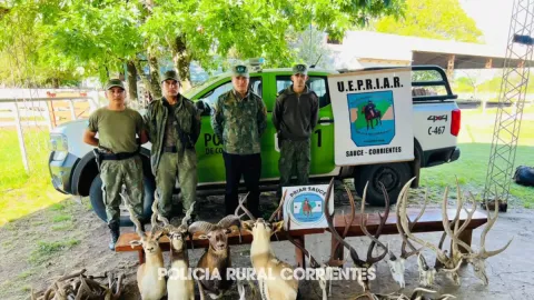 En un allanamiento por caza furtiva, concretado en una cabaña de la localidad de Sauce, Corrientes, la Policía secuestró numerosas astas de ciervo, arma de fuego y proyectiles de distintos calibres.