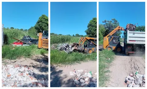 Con un camión y maquinaria Bobcat, se procedió al retiro de rellenos ilegales y de una vivienda precaria abandonada dentro de la laguna, acciones que afectan seriamente el funcionamiento natural del espejo de agua.
