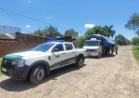 Asimismo, personal del Escuadrón 16 «Clorinda» controló un camión de una empresa de transporte, al momento en que se encontraba cargando mercadería de origen extranjero sin aval aduanero, ubicado en Barrera de Contención Hídrica y calle San Vicente.