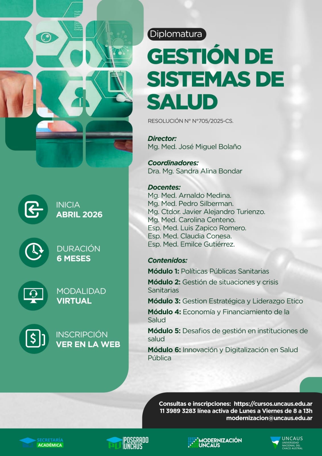 La Universidad Nacional del Chaco Austral (UNCAUS), a través de sus áreas de Diplomaturas y Formación Continua, ofrece diversas propuestas académicas orientadas a la gestión y la salud.