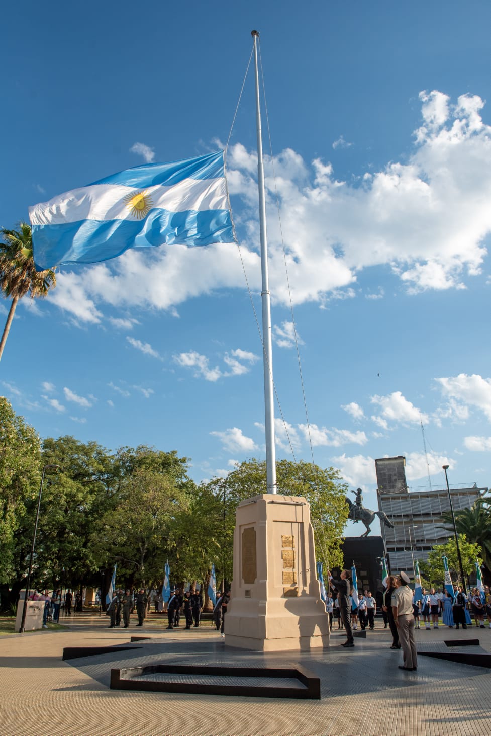 Las actividades estuvieron encabezadas por el intendente Bruno Cipolini, acompañado por la presidenta del Concejo Deliberante, Nora Gauna; autoridades de las Fuerzas de Seguridad; concejales; funcionarios municipales; la directora Regional Educativa, Paloma Egea; el vocal del IPDUV, Daniel Monti; autoridades de instituciones educativas; representantes de la Federación de Colectividades; y vecinos de la ciudad.