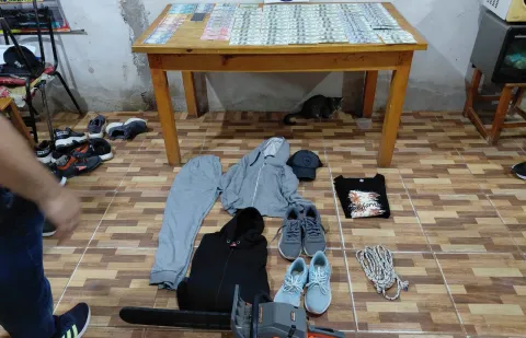 Tras tareas investigativas y análisis de cámaras de seguridad, se concretaron allanamientos en distintos domicilios, donde se logró la aprehensión de los sospechosos y el secuestro de cartuchos, dinero en distintas monedas, celulares, prendas de vestir, un automóvil y una escopeta.