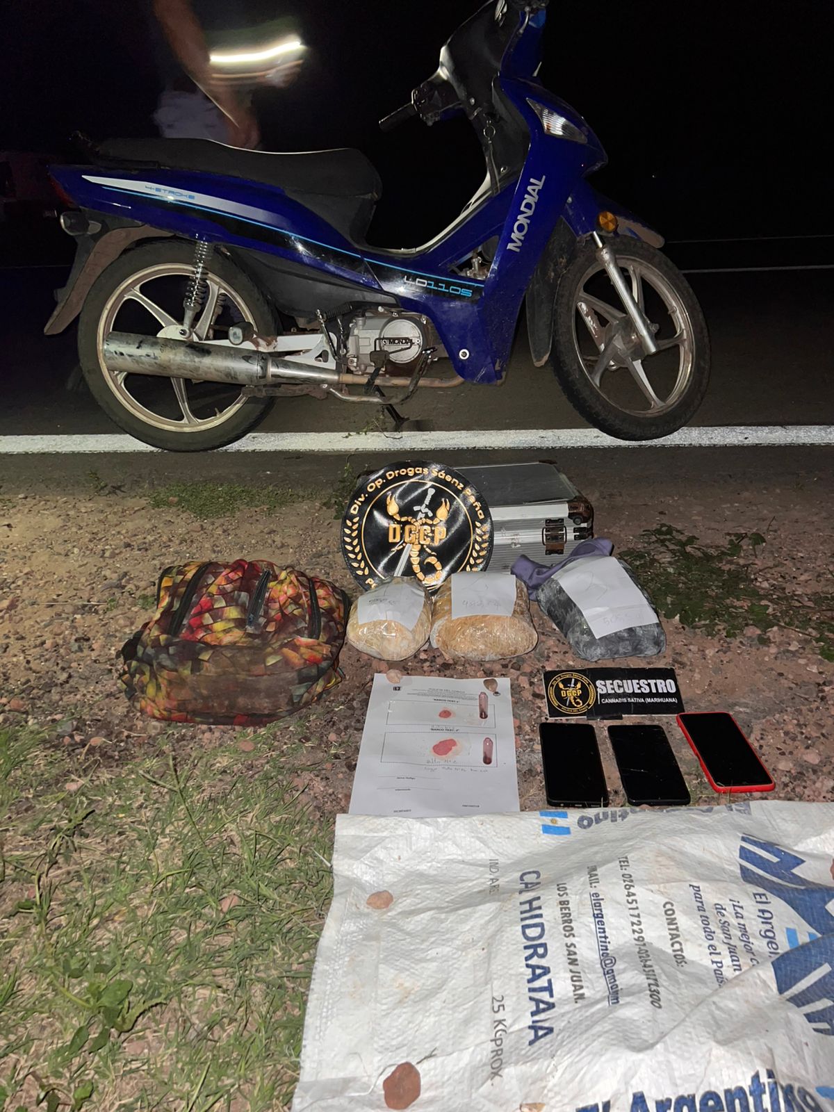 El operativo tuvo lugar a la altura del kilómetro 224, donde personal policial que realizaba controles vehiculares demoró a tres personas que se desplazaban en dos motocicletas.
