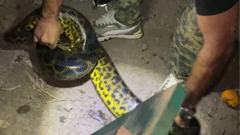 Al llegar, el especialista confirmó que se trataba de una boa curiyú de aproximadamente 2,5 metros de longitud. La serpiente fue capturada de manera controlada, sin que se registraran personas heridas ni daños.