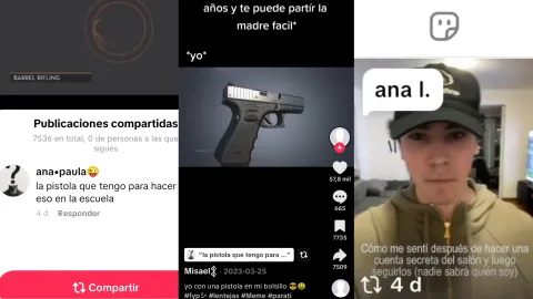 Según consta en la denuncia, el perfil posee únicamente dos publicaciones en las que «se observa un video de las partes de un arma de fuego aparentemente 9 milímetros», acompañado por la leyenda: «Mi novio entreno box 5 años y te puede partir la madre fácil». A esto se suman expresiones más directas vinculadas al uso de armas: «Yo con una pistola en mi bolsillo» y «La pistola que tengo para hacer eso en la escuela».