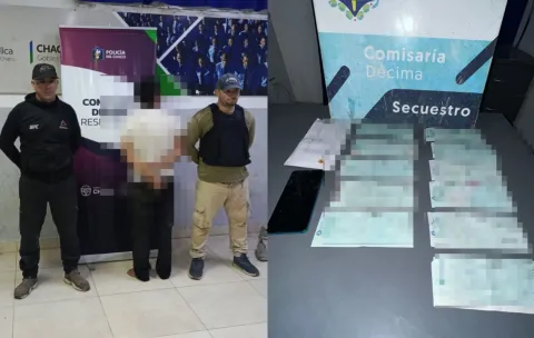 Durante el operativo se procedió al secuestro de 11 cheques pertenecientes a distintas entidades bancarias, por un monto total de $3.410.660,74, además de un teléfono celular Samsung.