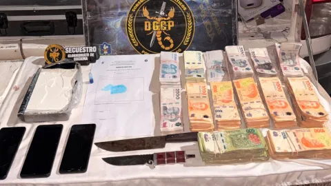 En el lugar, los efectivos incautaron un paquete con 1.033 gramos de cocaína, además de tres teléfonos celulares, $5.486.850 en efectivo, dos cuchillos y un Volkswagen Vento.