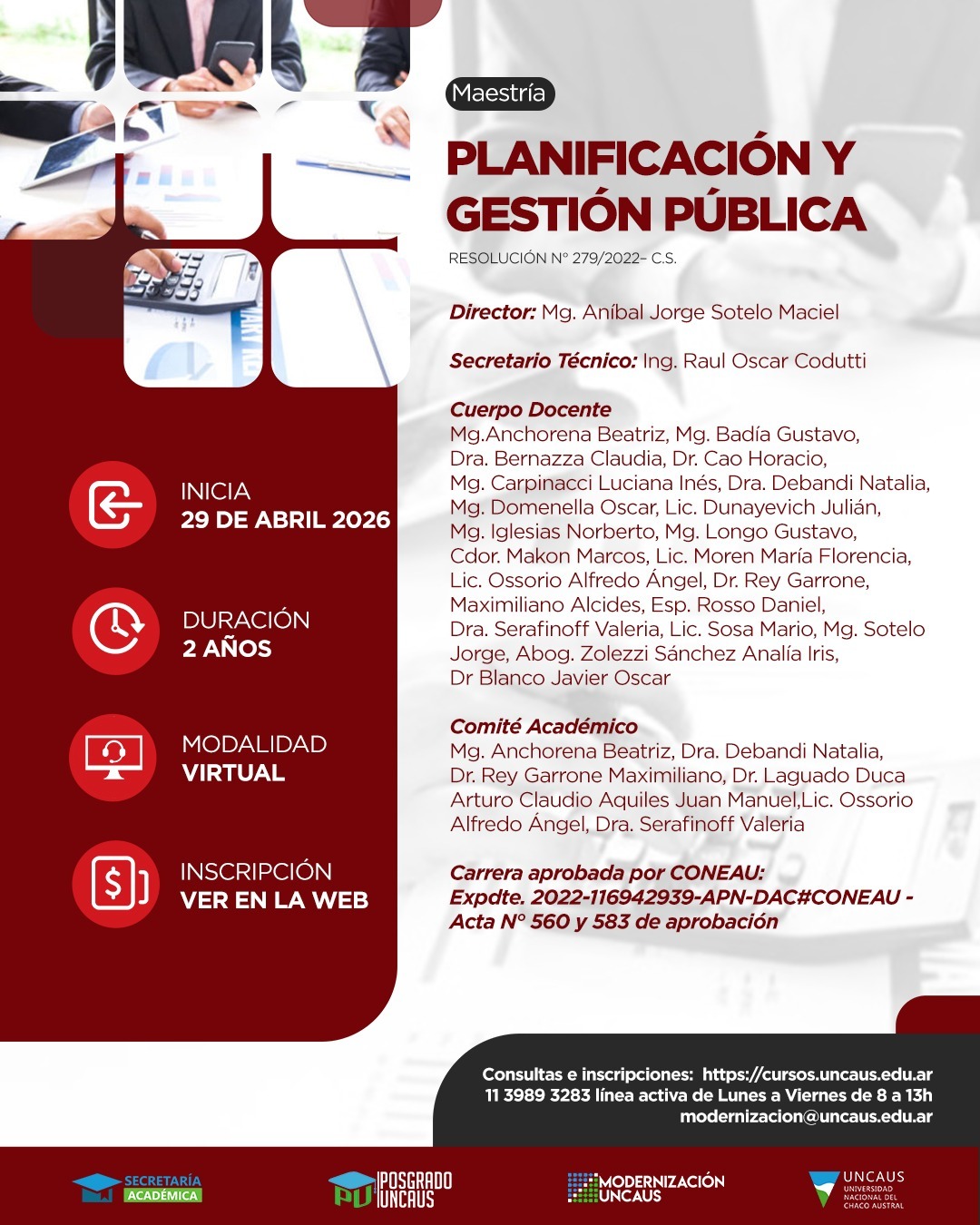 La Universidad Nacional del Chaco Austral (UNCAUS) anunció la apertura de inscripciones para la Maestría en Planificación y Gestión Pública, una propuesta de posgrado orientada a la formación de profesionales capaces de diseñar, implementar y evaluar políticas públicas en distintos niveles del Estado.